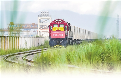 8月23日,前往老撾萬象的國際貨物列車駛出中老鐵路中國玉溪研和站。當(dāng)日,中老鐵路國際貨物列車(玉溪—萬象)實現(xiàn)雙向開行。新華社記者 陳欣波 攝