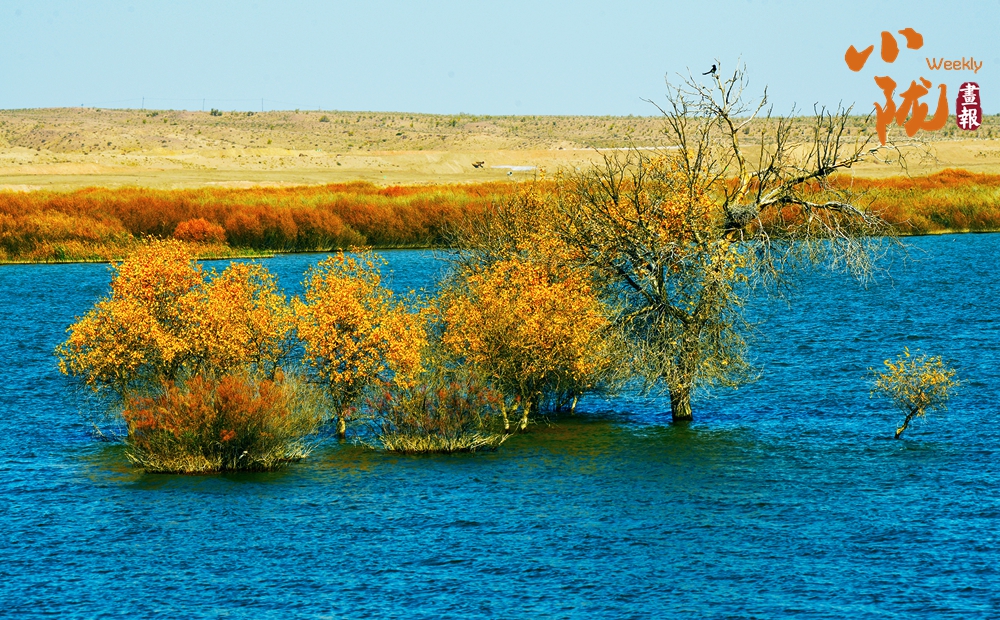 金色胡楊在陽光下泛著溫暖光澤,斑斕絢麗的蘆葦如金色絲帶點(diǎn)綴荒漠,與碧綠河水、湛藍(lán)天空構(gòu)成濃墨重彩的秋日?qǐng)D景。